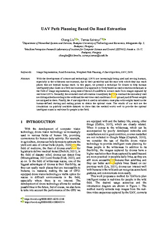 Liu, Chang and Szirányi, Tamás (2022) UAV Path Planning based on Road Extraction. In: Proceedings of the 2nd International Conference on Image Processing and Vision Engineering. SciTePress Science and Technology Publications, Lda, Setubal, pp. 202-210. ISBN 9789897585630 10.5220/0011089900003209