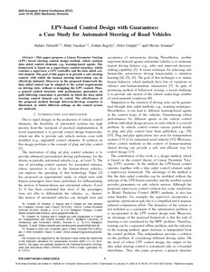 Németh, Balázs and Fazekas, Máté and Bagoly, Z. and Gáspár, Péter and Sename, O. (2023) LPV-Based Control Design with Guarantees: a Case Study for Automated Steering of Road Vehicles. In: 2023 European Control Conference (ECC). Institute of Electrical and Electronics Engineers, Piscataway (NJ), pp. 1-6. ISBN 9783907144084 10.23919/ECC57647.2023.10178394